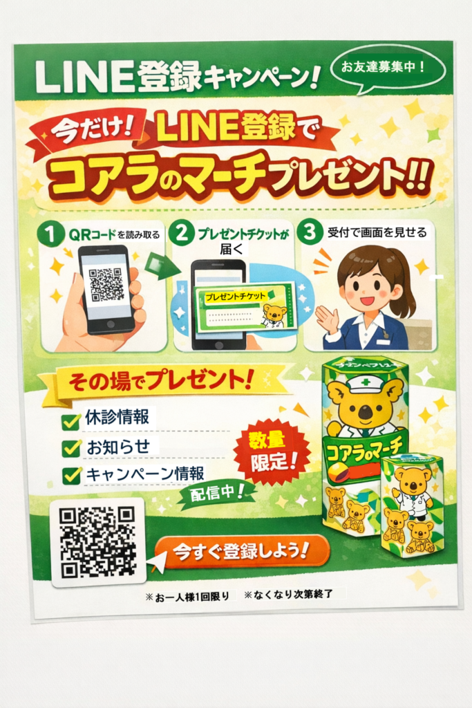 LINEでは、休診情報やクリニックからのお知らせなどを配信しています。